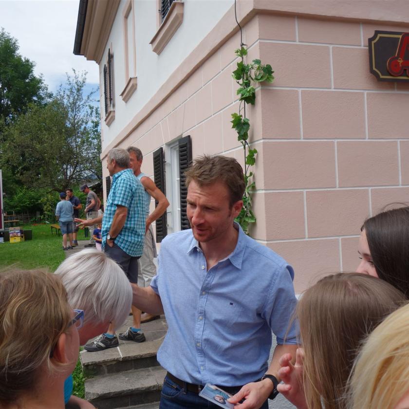 Doktor Grubers Bruder Hans vom "Bergdoktor" kam in einer Drehpause am Marktplatz in Going zu seinen Fans.