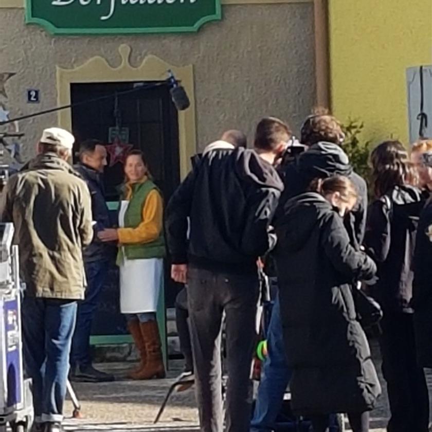 Im fiktiven Dorf Lansing bei Dreharbeiten mit Heidrun Gärtner und Harry Blank als Annalena und Mike